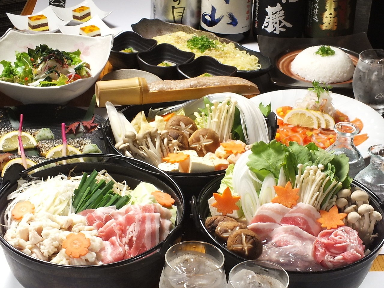 女子会やコンパ等に最適!鍋付のコース。楽しいひと時を是非♪※当日はコース料理はご指定頂けません。ご希望がある場合は前日までにご連絡お願いたします。なお仕入れ状況によりご希望に添えない場合も御座います。予めご了承ください。